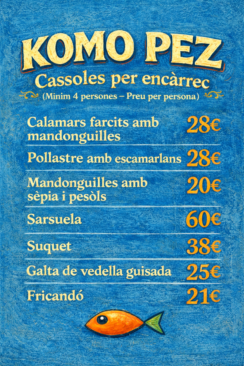 Cal reservar el producte de dilluns a dimecres; servei del mati divendres, dissabte i diumenge de 9:00 a 10:30.”